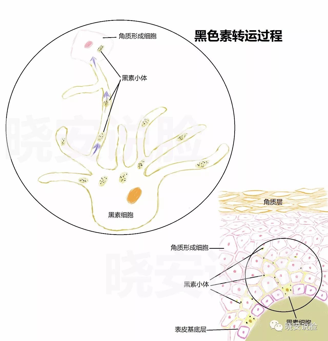 比如那个体外实验,最多也只能说明烟酰胺的美白效果可能是发生在黑色素从黑素细胞到角质形成细胞的转运过程中的,请注意,这里的用词“可能”,毕竟体内的实际环境是很复杂的,和培养皿里放两堆细胞的情况差距很大。况且这个实验也无法说明这种抑制到底发生在黑色素转运的哪一个步骤,这过程听起来简单,实际可是一个很复杂的事: