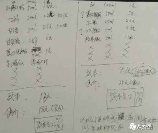 因为这两个水配方都非常简单,当时我就顺手搞了两个肤感几乎以假乱真的山寨版出来,成本如下(请忽略我的灵魂稿风):