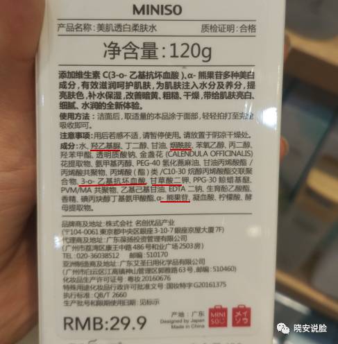 再看一眼人家的功效性体系,那才更是让我瞠目结舌。。。相比之下,玉兰油新出的售价340元的高机能水简直弱爆了!!!玉兰油只放了一点烟酰胺和甘草酸二钾,人家这个29.9元的美白水却有烟酰胺、维C乙基醚、甘草酸二钾、α-熊果苷和凝血酸!!!至于什么酵母提取金盏花提取之类的我特么都给人忽略不计了啊(其实要真放的话还是挺贵的),因为看到这个α-熊果苷时我就已经被震撼掉了!看过我那篇美白专稿的应该知道这是为什么。。。
