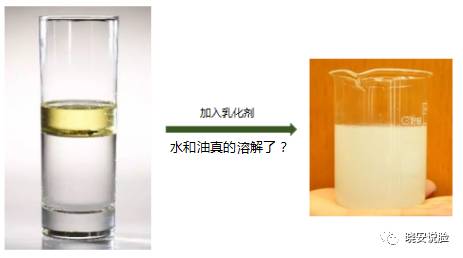简单说,乳化仅仅是在乳化剂的保护下暂时性的把水围成很小的水滴分散在油里(这叫油包水),或者相反:把油围成很小的油滴分散在水里(这叫水包油)。
