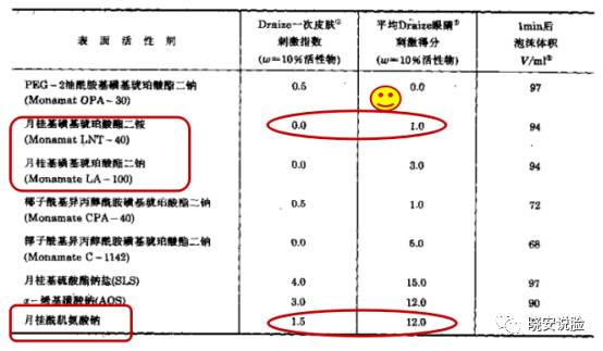 此类表活在配方表里常见的名字:月桂醇聚醚磺基琥珀酸酯二钠、椰油酰羟乙磺酸酯钠、月桂醇磺基琥珀酸酯二钠、月桂基葡萄糖羧酸钠、C14-16烯烃磺酸钠、异硬脂酰乳酰乳酸钠、月桂基甘醇羧酸钠等。
