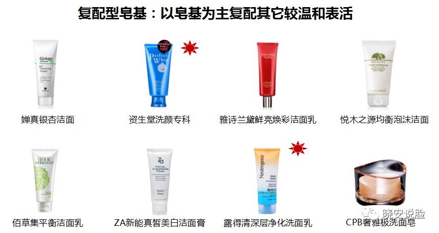 这类全是以皂基为主表活了,脱脂力在众多洁面里是最强的,刺激性不言而喻,容易出现肤感发涩洗后紧绷的问题,其中挂着红星星的三款,约等于单纯的皂,虽然长得跟洁面乳似的~虽然里面也算复配了别的表活~