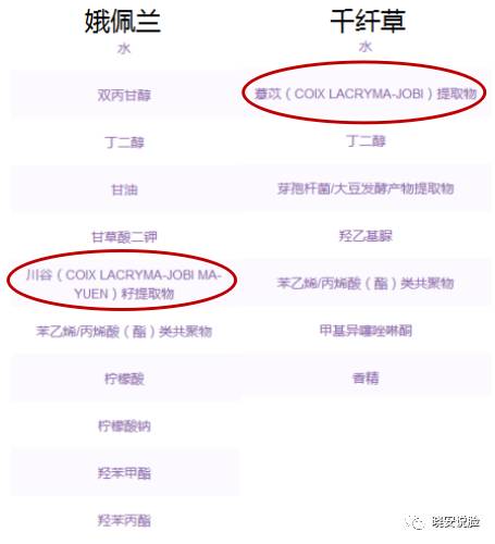 如果只看配方表排名,千纤草里的薏仁提取物倒是比娥佩兰良心啊!毕竟紧紧排在水后呢!