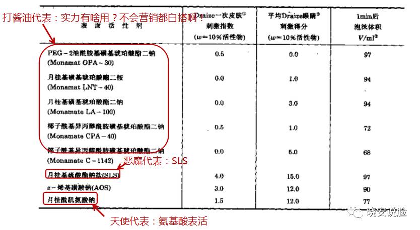 这是咱们国内仅有的一套超级全面的化妆品技术专业书籍里截的,自己看数值嘛,数字越大刺激性越大。这个书的地位可以说是国内化妆品配方师必备的圣经,说服力还是可以的吧?虽然年代有点久远了(最近出新版了,好想买,就是略贵啊)。。。当然,这不是黑氨基酸表活,它的确有它的优势,只不过没有大家想象的那么夸张,说出来也是希望大家以后能理性看待化妆品而已~