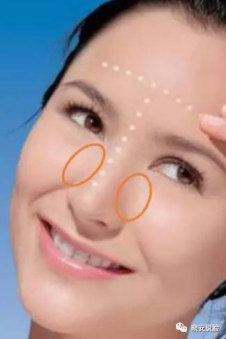 (1)T区不仅指的是额头和鼻子,也包括眼睛下方鼻子两旁的那一小部分(黄圈)▼