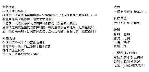 PS:这里说的只是尝试哦,不能保证你用了真能看到淡斑的效果。反正,安大人用高丝的娜蔻是没有看到美白效果的,里面抗坏血酸葡糖苷的含量也不算低,或许雅诗兰黛的选料更好?毕竟那么贵,如果它都不行,你也就可以对这个抗坏血酸葡糖苷放心地死心了,哈哈哈~