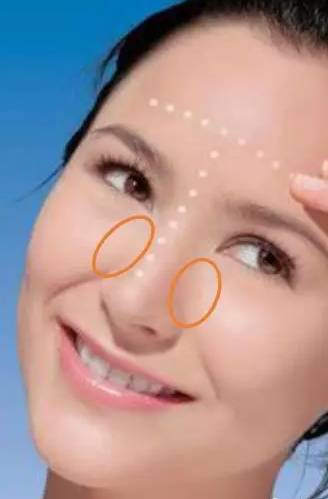 (1)我所说的T区不仅指的是额头和鼻子,也包括眼睛下方鼻子两旁的那一小部分(黄圈)