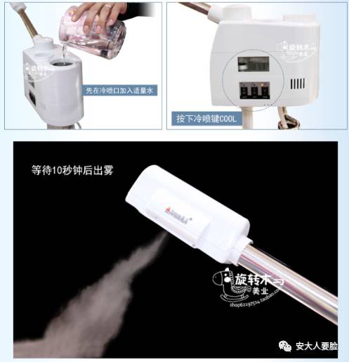没有加湿器的,你还可以试试这种淘宝上号称范冰冰同款的蒸脸器,也是大差不差(当然要调成冷喷模式):