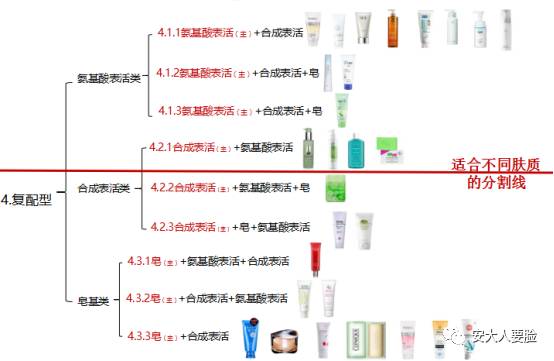 分割线以下为中油性皮肤部位的首选。同样的,越靠上的相对越温和,清洁力相对也略弱,但总体差别也不大。