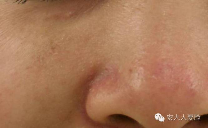 护肤品只选择温和补水保湿类的产品,不要考虑任何美白、去角质 、深层清洁之类的东西,至少在肌肤薄弱的部位绝对要避免这些产品!
