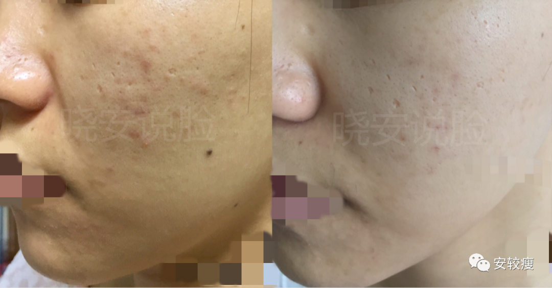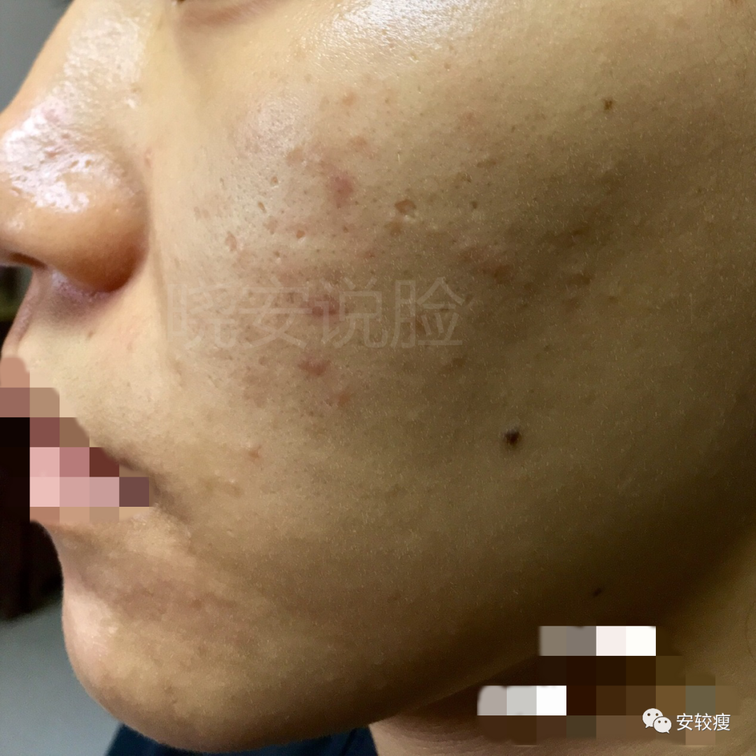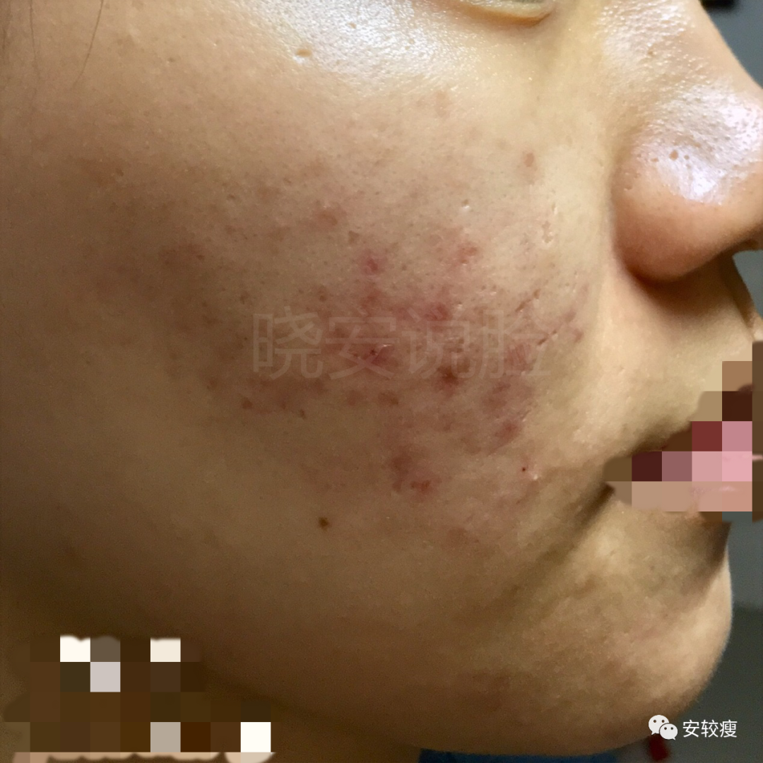 期间没有自用过祛痘产品,有到皮肤管理中心做过物理微晶毛孔痘坑管理和MTS祛痘毛孔肌管理各一次;
