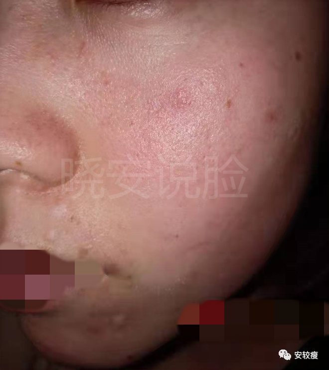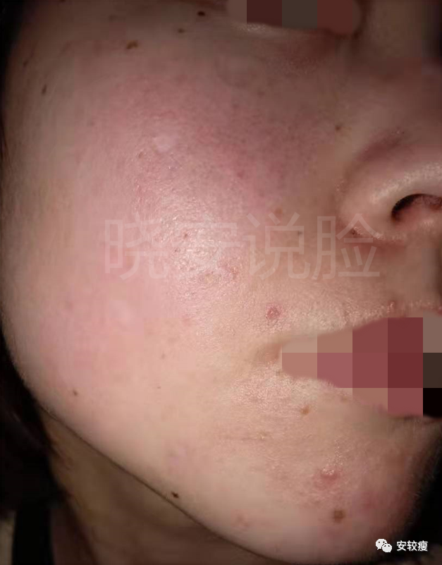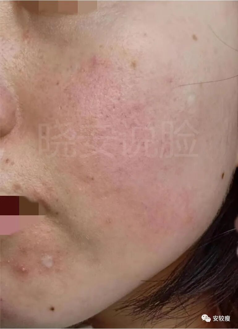 左侧脸颊之前用祛斑偏方导致发红刺激,经常发红严重已持续五六年;