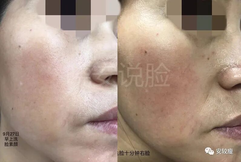 2019.12.13反馈(湿度30%),自我感觉毛孔纹理没有变化(实际照片看变细腻了);泛红明显改善,也没有再严重瘙痒过,中间下巴轻微发痒过一次,用炉甘石两天后好转;有些轻微缺水,五小时后的状态晦暗无光;额头皱纹有变淡一些(但照片看不太明显);
