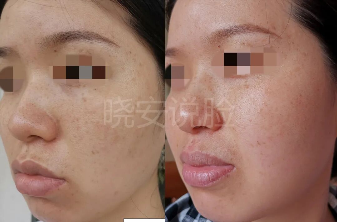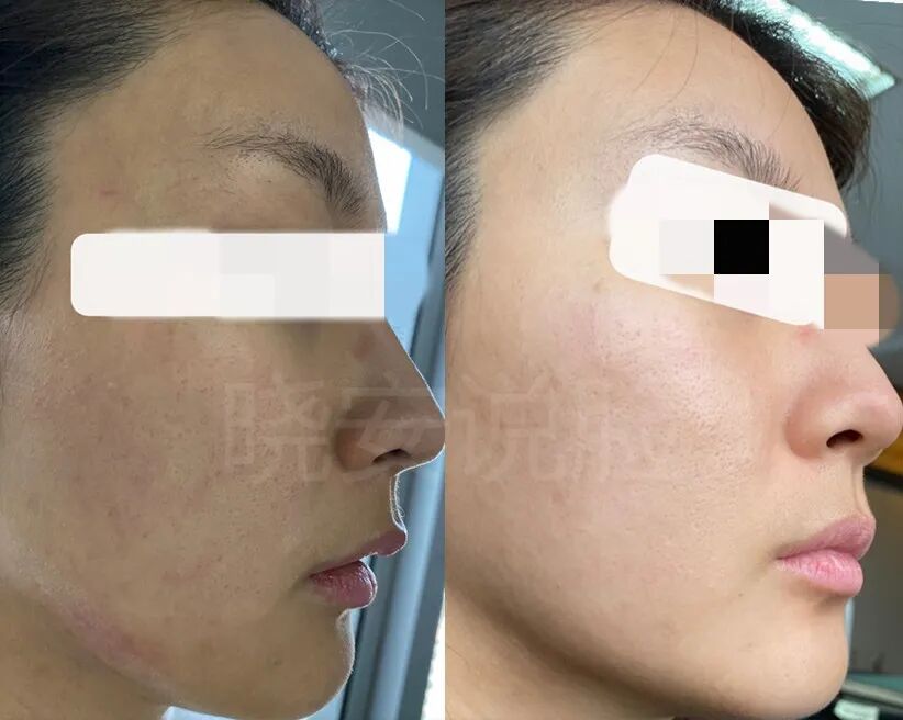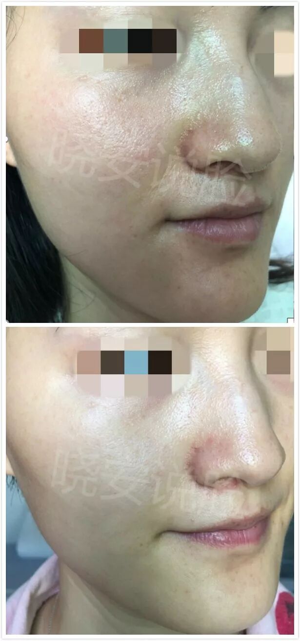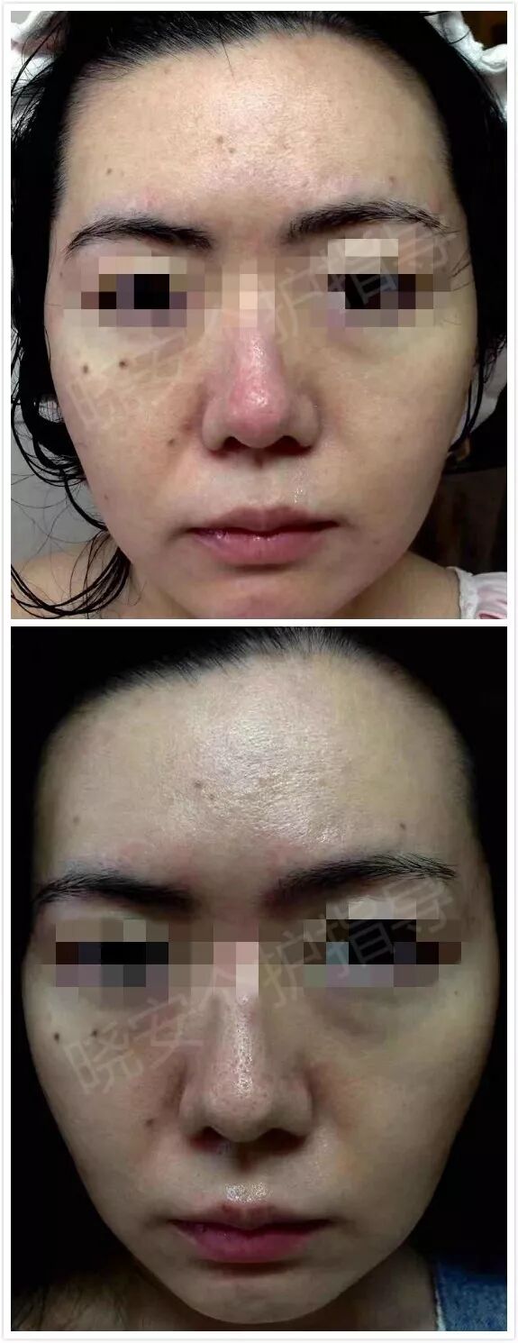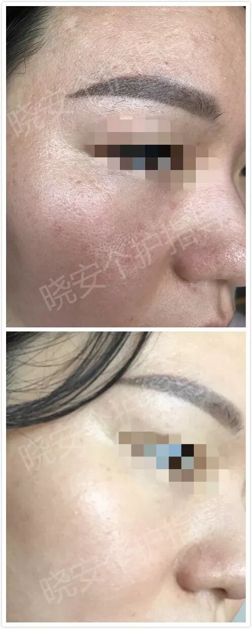 非常红);第一次效果特别明显,以前的晒斑都没了,白的发光,第二次没感觉(间隔只有一个月);红的情况也是,第一次做完刚好夏季,出入空调房已经没很大的脸色变化了;出油变少,毛孔变小了,但黑头没变化;光子嫩肤刚做完的几天皮肤红、干,敷点面膜就好了;点阵激光后,毛孔里的脏东西会随着洗脸结痂的过程,变成一条条的出来;