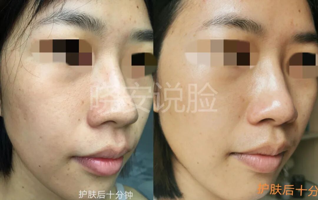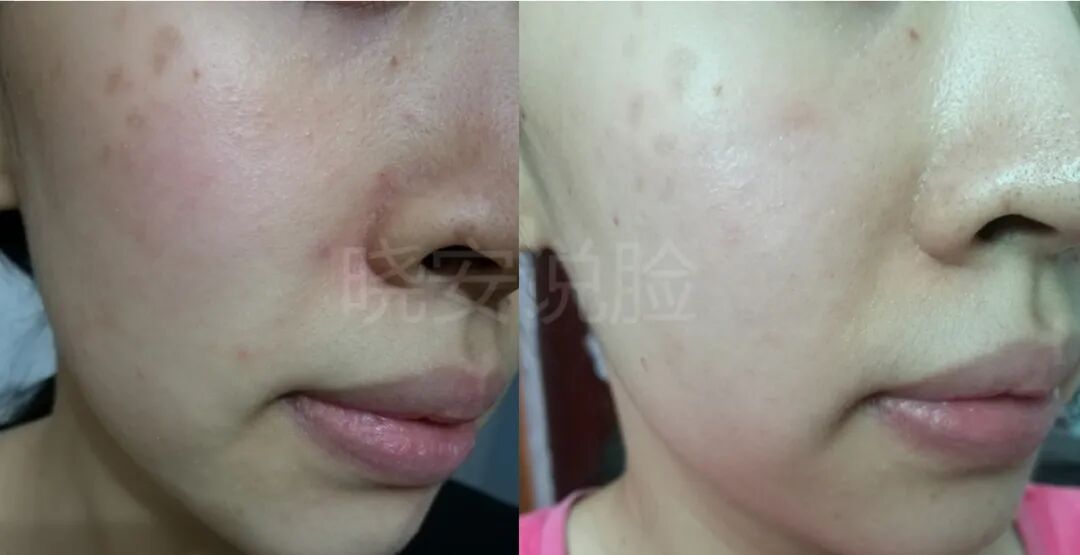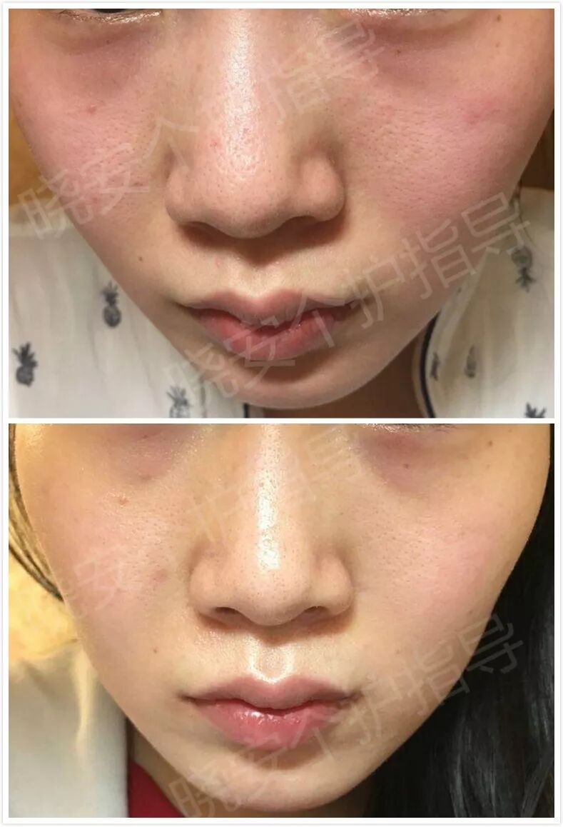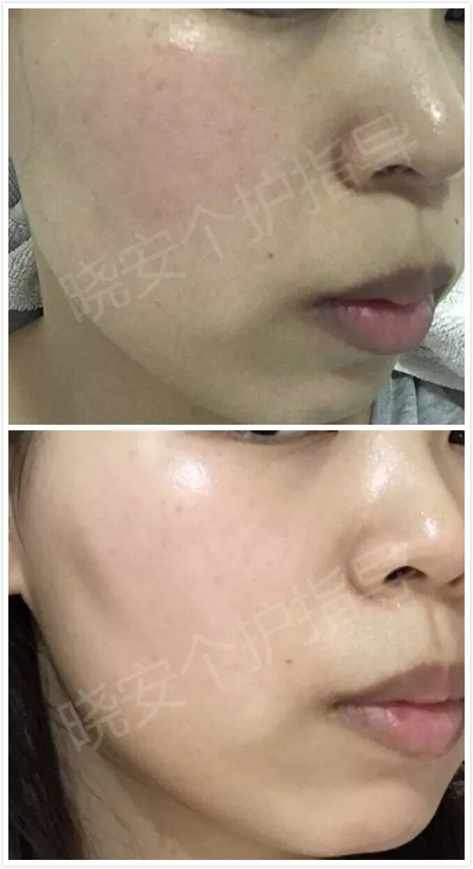 #晓安个护指导·信不信去红抗敏是最靠谱的美白方向之一#30岁女,坐标广东(湿度经常性80%以上);春夏舒服,湿度大会略油,用贝德玛擦完脸,不涂东西也很舒服;秋冬清洁后5分钟内不涂东西即会干燥紧绷,常年用Nursery柚子卸妆啫喱;皮肤敏感,运动出汗后,脸会起红痒的“蚊子包”。PS:对比图绝对没擦粉,因为那是案主宝宝强撑病体拍给我的,只为方便我做案例。。。感动~