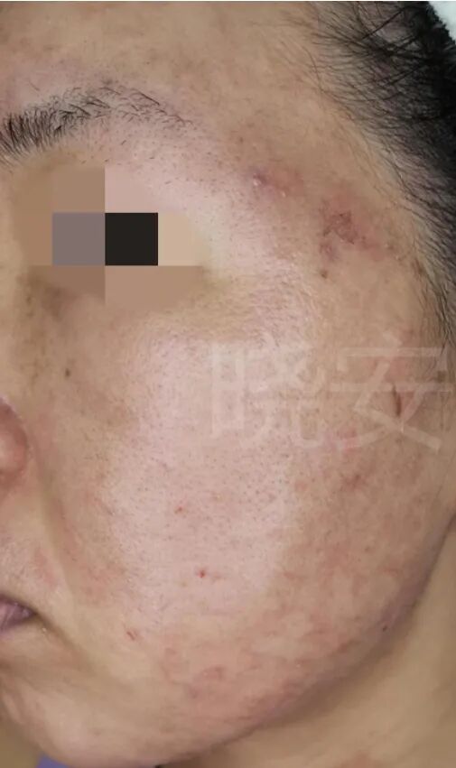 #晓安个护指导·这样的也敢接。。是因为接完才发现#47岁女,坐标辽宁,干性皮肤,之前胡乱祛斑导致皮肤严重受损;经常红肿,甚至渗液流脓。。。每年夏天皮肤状态都更差,泛红烧灼更严重,并为此去过省会的专科皮肤医院,做过面部CT。。。