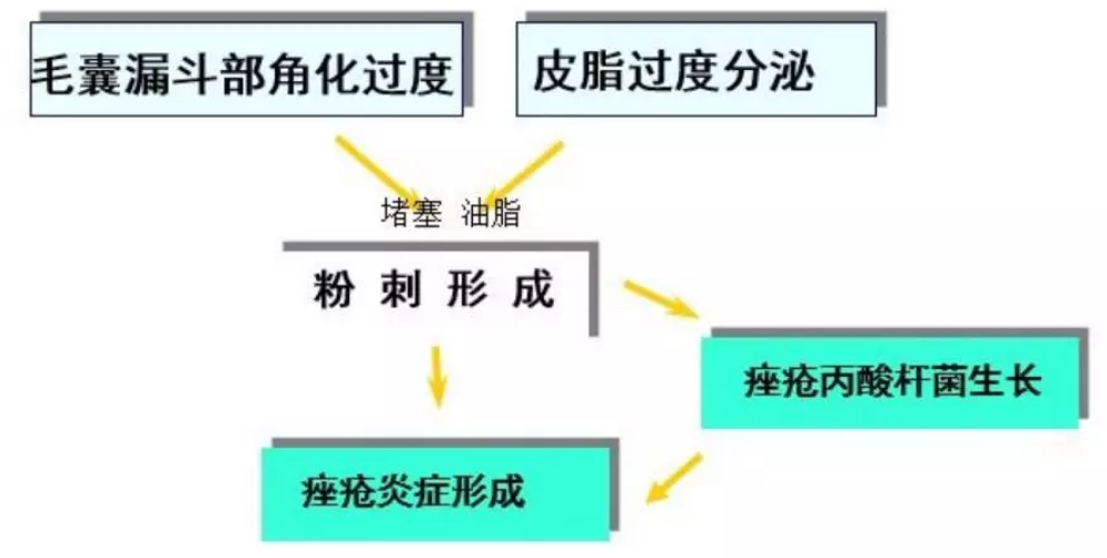 因为,以前我们也说过几次了,痘痘的四大发病环节: