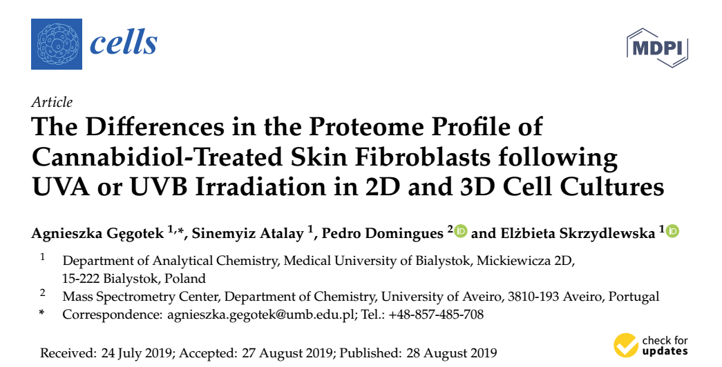 而且,令人兴奋的是,我居然真的找到了两篇关于CBD对于被紫外线辐射后的角质细胞和成纤维细胞的保护作用的研究文献!