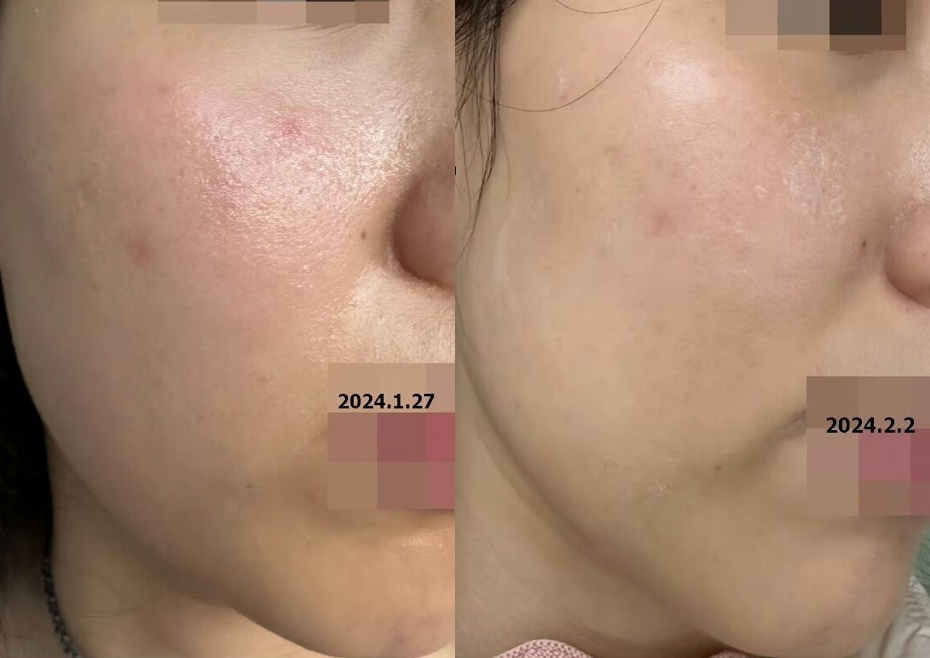 听了我的建议,停掉了外涂产品,只涂一点炉甘石,不到一周明显好转(2024.2.2)。