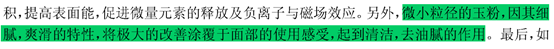 对此,我个人的意见嘛,对这个玉粉促进皮肤新陈代谢的美容功效还是别太当真的好,虽然是个已经申请了专利的成分,但功效证据实在是太太太太少了,这极少的资料来源也并不权威,并且还只有一个“可能”的结论;至于促进微循环这种功效嘛,说实话,你敷个热毛巾的效果都比敷这个玉粉来的明确可靠;倒是去除皮屑和改善腺体分泌的这俩功效看起来比较实在,这一点嘛,官方解释是玉粉本身有细腻爽滑的特性,涂于皮肤上能改善肤感,起到清洁,去油腻的作用,我看说的没什么毛病: