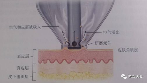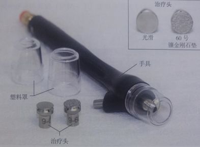 微晶磨削设备一般都有一个闭环真空系统,利用负压将皮肤吸入手柄中,并与研磨元件充分接触,这样,随着治疗手柄在皮肤上的不断移动,皮肤最浅表层就会被逐渐去除,去除掉的组织碎屑则会被传送到特制的容器中,最后被当做医疗废弃物处理。