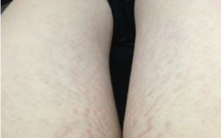 机械张力:怀孕期间皮肤会随着皮下组织如脂肪和肌肉的扩张被逐渐的拉伸,导致真皮层结缔组织损伤,胶原纤维和弹性纤维破坏,引起病灶处伸展性和弹性的额减弱,从而产生条纹状的皮肤损害;