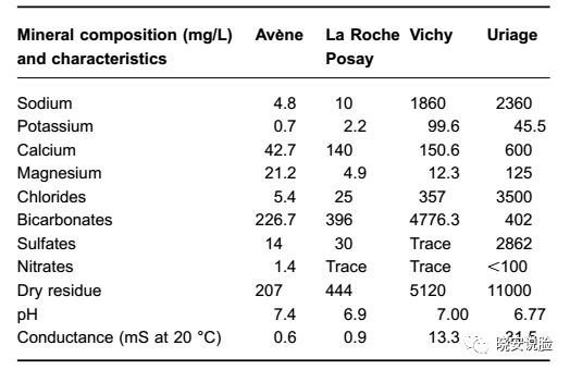 Ghersetich I, Brazzini B, Hercogova J, et al. Mineral waters: instead of cosmetics or better than cosmetics?[J]. Clinics in Dermatology, 2001, 19(4): 478-482.